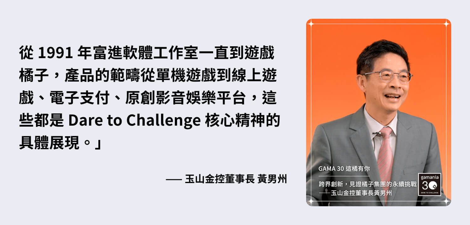 回看橘子的起點,Dare to Challenge 從來不是後來才被定義的口號,而是一開始就存在的特質。當市場還在思考台灣遊戲業該長成什麼樣子時,橘子選擇了冒險,讓遊戲不只是遊戲,成為創造的軸心圓,持續向外探索更多可能。
